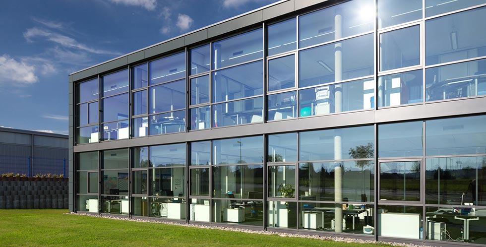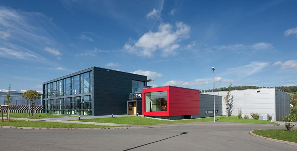 Lager- und Logistikflächen, einen Ausstellungs- und Verkaufs-Showroom sowie die Verwaltung. Die souveräne, fein ausgewogene Architektur entspricht dem innovativen Charakter dieses Unternehmens. Hier ist Arbeiten nicht nur Funktion, sondern Erlebnis.
