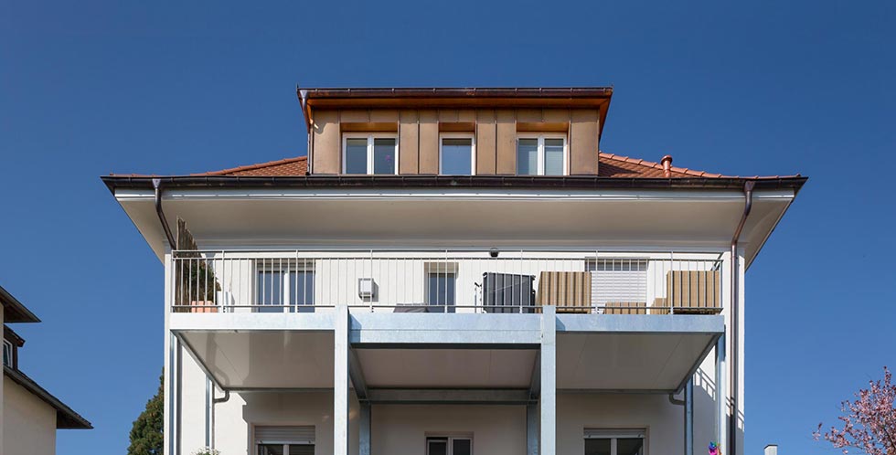 Das Haus war schon vorher gut! Die Sanierung erfolgte deshalb unter der Maßgabe, den Charakter des Hauses nicht zu verändern. Das Dachgeschoss wurde ausgebaut und mit einer großzügigen Schiebeverglasung zum Balkon hin bereichert.
